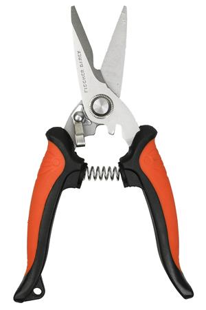 Multifunkčné nožnice z nehrdzavejúcej ocele. Ideálne na strihanie papiera, kartónu, kože, plastu, elektrických vodičov, železných drôtov a tenších kovových materiálov. Ergonomická rukoväť pre pevné a pohodlné uchopenie. Čepeľ so zúbkovaním. Pružinový mechanizmus a bezpečnostný uzáver.