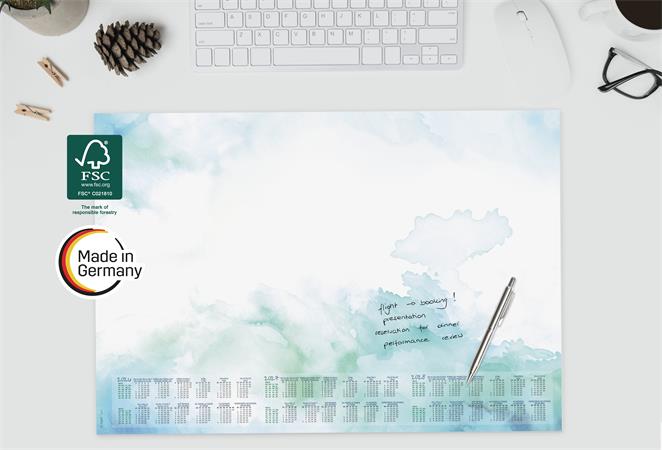 Podložka na stôl, 595x410 mm, trojročné a týždenné kalendárium, SIGEL "Watercolor Sea"