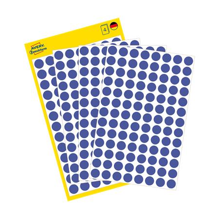Etikety, okrúhle, priemer: 8 mm, odstrániteľné, AVERY ZWECKFORM, modré, 416 etikiet/bal