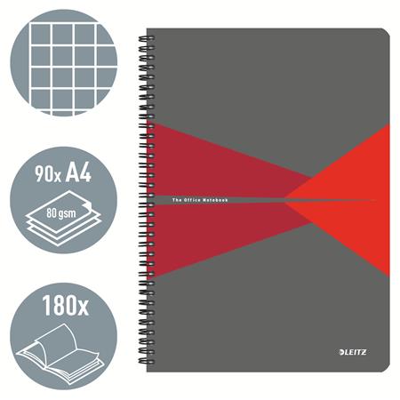 Blok, A4, štvorčekový, 90 listov, PP obálka, LEITZ "Office", sivá-červená