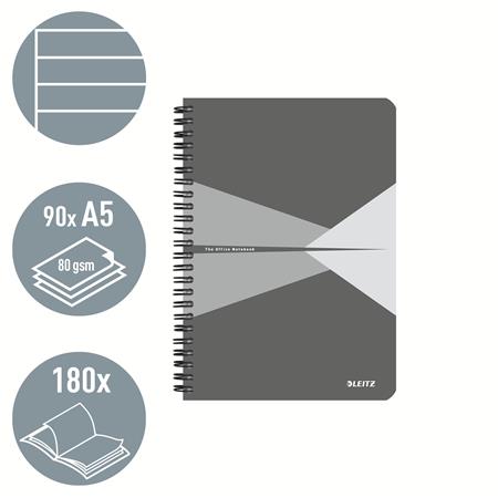 Blok, A5, linajkový, 90 listov, PP obálka, LEITZ "Office", sivá