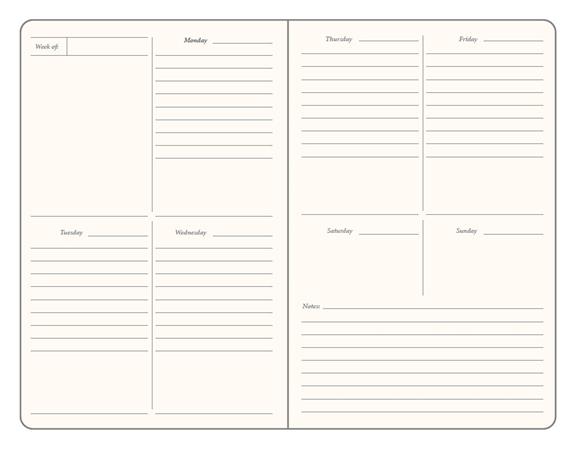 - bez dátumov - formát A5 - zaoblené rohy - uzatvárateľné na gumičku - 104 strán - linajkový - papier krémovej farby