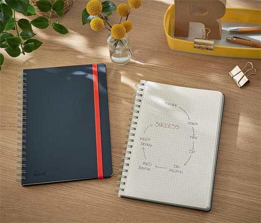 Špirálový zošit, B5, štvorčekový, 80 listov, LEITZ, "Cosy Soft Touch", zamatová sivá