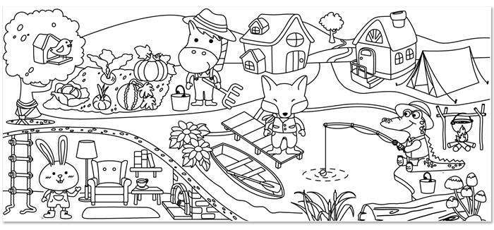 Omaľovávanka v kotúči, samolepiaca, 31x355 cm, STICK N, veselá dedina