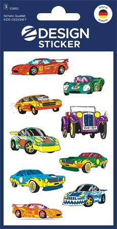 Nálepky, papier, 3 hárky, 76x120 mm, AVERY ZWECKFORM, "Z-Design No.53882", farebné autá