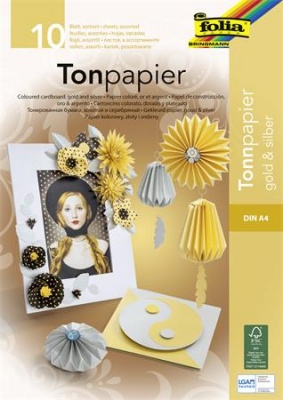 Farebný papier, A4, 130 g, 10 listov, FOLIA, zlatý-strieborný