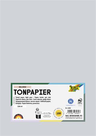 Farebný papier, A4, 130 g, 100 lap, FOLIA, svetlosivý
