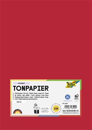 Farebný papier, A4, 130 g, 100 listov, FOLIA, jasný červený