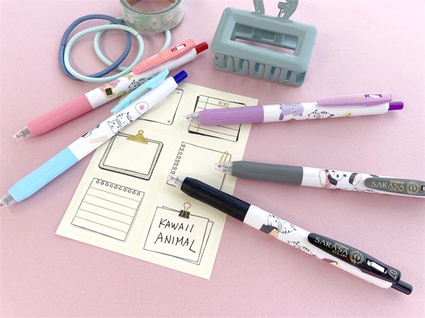 Sada gélových pier, 0,33 mm, stláčací mechanizmus, ZEBRA "Sarasa Clip Kawai Animal"