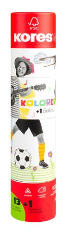 Farebné ceruzky, sada, trojhranné, 1 grafitová ceruzka, 1 strúhadlo, KORES "KOLORES Twist & Turn", 12 rôznych farieb
