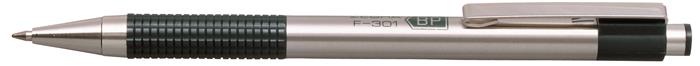 Telo guľôčkového pera F-301 vyrobené z nehrdzavejúcej ocele je zárukou štýlovosti a trvanlivosti. Vrúbkovaný úchop zaručuje pohodlné a stabilné písanie. Farba tela je zelená, farba atramentu modrá. Priemer guľôčky: 0,7 mm, hrúbka písma: 0,24 mm. Typ náplne: F.