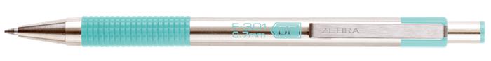 Guľôčkové pero, 0,24 mm, stláčací mechanizmus, nerezová oceľ, farba tela: pastelová zelená, ZEBRA "F-301", modré