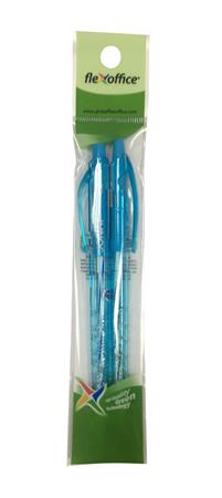 Guľôčkové pero, 0,25 mm, stláčací mechanizmus, 2 ks/blister, FLEXOFFICE "Jonat", modré
