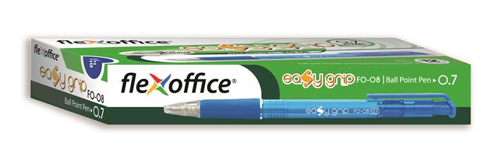 Guľôčkové pero, 0,4 mm, stláčací mechanizmus, FLEXOFFICE "EasyGrip", červené