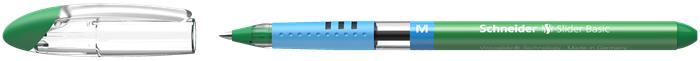 Guľôčkové pero, 0,5 mm, s vrchnákom, SCHNEIDER "Slider M", zelené