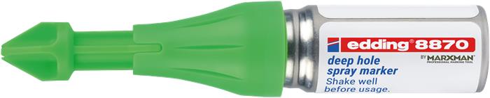 Tekutý kriedový sprej s patentovaným pumpovým mechanizmom pre nepermanentné značenie na ťažko dostupných miestach, takmer na všetky materiály. - jedinečne tvarovaná tryska umožňuje značenie otvorov s hĺbkou 50 mm a priemerom 3-13 mm - možno ju použiť z akéhokoľvek uhla a výšky, dokonca aj nad hlavou - nepermanentnú tekutú kriedu možno ľahko zotrieť z nesavých povrchov pre rýchle opravy - farba: neónovo zelená
