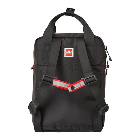 LEGO vzorovaný batoh je skvelou voľbou na drobné každodenné veci pre deti. -1 hlavný priečinok -1 menšie vrecko na zips na cennosti -1 predné vrecko na zips pre rýchly prístup -reflexné prvky na všetkých stranách -polstrovaná zadná časť zdobená LEGO vzorom -nastaviteľný hrudný popruh -bočný D-krúžok - základná farba je čierna, časti výrobky v modrej, červenej a zelenej farbe