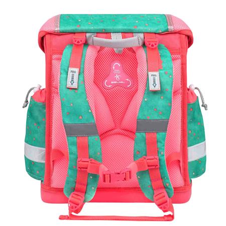 Ergonomický dizajn: -Ergonomicky tvarovaná školská taška s priedušným, polstrovaným chrbtovým systémom, ktorý zabezpečuje maximálne pohodlie a pomáha predchádzať bolestiam chrbta. Ergonomickú vhodnosť potvrdzuje aj certifikát nemeckého inštitútu AGR. Nastaviteľné popruhy: -odnímateľný a nastaviteľný hrudný popruh, nastaviteľné ramenné popruhy pre dokonalé prispôsobenie -stabilné a pohodlné nosenie -polstrované ramenné popruhy v tvare S, prispôsobiteľné postave dieťaťa, zabezpečujú optimálne usadenie a komfort pri nosení.  Premyslený vnútorný priestor: -tri priestranné vnútorné priehradky vhodné aj na zošity a knihy formátu A4, vďaka čomu majú všetky školské potreby svoje miesto – dve bočné vrecká na dáždnik alebo 0,7 l fľašu na vodu. Praktické bočné vrecká:Dve bočné vrecká sú ideálne na uloženie dáždnika alebo 0,7 l fľaše na vodu a umožňujú rýchly a jednoduchý prístup. Jednoducho ovládateľná pracka: -ľahko otvárateľná kovová pracka s reflexným prvkom, ktorý zvyšuje viditeľnosť a bezpečnosť dieťaťa v cestnej premávke.  Superľahká konštrukcia: -hmotnosť tašky je len 930–990 g, takže zbytočne nezaťažuje ramená ani chrbát dieťaťa. Európska výroba: Produkt je navrhnutý a vyrábaný rodinnou firmou v Európe už od roku 1965, čo zaručuje jeho vysokú kvalitu a spoľahlivosť. Ideálna voľba pre rodičov, ktorí kladú dôraz na ergonomickú, bezpečnú a ľahkú školskú tašku pre svoje dieťa.