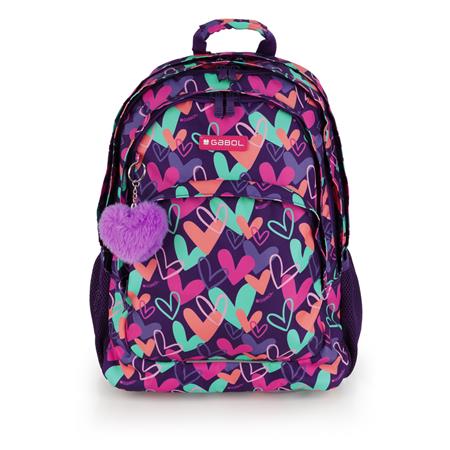 Školská taška, so zipsom, GABOL "Kokoro", fialová, so srdiečkami
