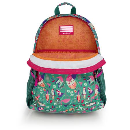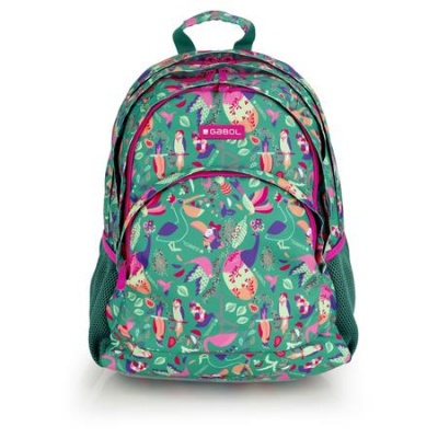Školská taška, so zipsom, GABOL "Vida", zelená, s tropickými motívmi