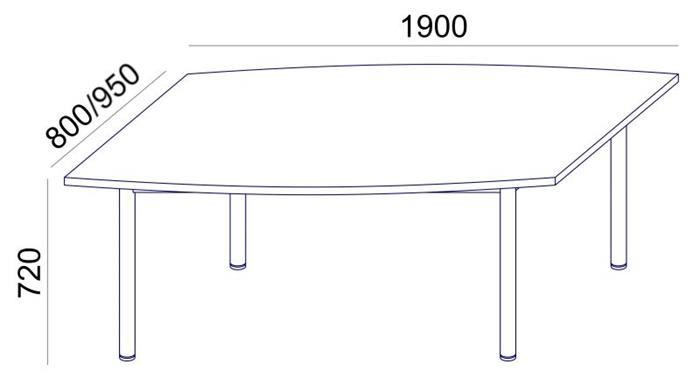 Konferenčný stôl, zakrivený, so sivými kovovými nohami, 80/95x190 cm, MAYAH "Freedom SV-43", biely