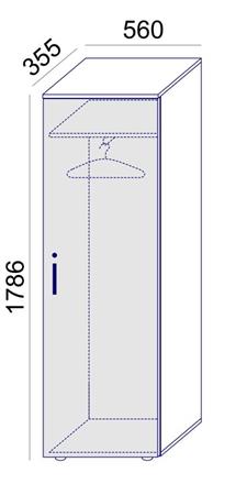 Jednodverová šatníková skriňa s policami, uzamykateľná kľúčom.
