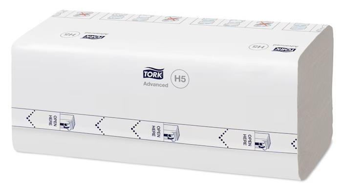 Papierové utierky, skladané, H5 systém, 1 vrstvové, Advanced, TORK "PeakServe®", biela so sivou potlačou