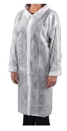 Návštevnícky plášť na jedno použitie chráni odev pred znečistením — ideálny pre návštevníkov v priemyselnom, laboratórnom alebo hygienickom prostredí. -materiál: netkaný polypropylén (20 gsm) -bez vrecka -so štyrmi zapínaniami na suchý zips -s golierom, na zápästiach s elastickým lemom -farba: biela -veľkosť: XL (110 x 140 cm - dĺžka x šírka) -balenie: 10 ks/bal, 100 ks/kartón