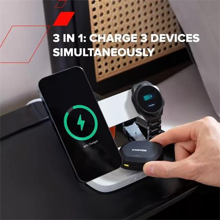 Hexagon WCS310 s funkciou 3 v 1 dokáže súčasne nabiť tvoj telefón, smart hodinky a slúchadlá bez toho, aby spôsoboval neporiadok alebo zamotané káble. Príprava na deň alebo večer s plne nabitými zariadeniami nebola nikdy jednoduchšia. Či už telefón rýchlo dobijete alebo necháte nabíjať cez noc, táto nabíjačka efektívne zabezpečí energiu.-QI magnetické pripojenie zabezpečuje, že tvoje zariadenia vždy perfektne dosadnú na miesto, poskytujúc optimálny výkon bez potreby manuálneho nastavenia.